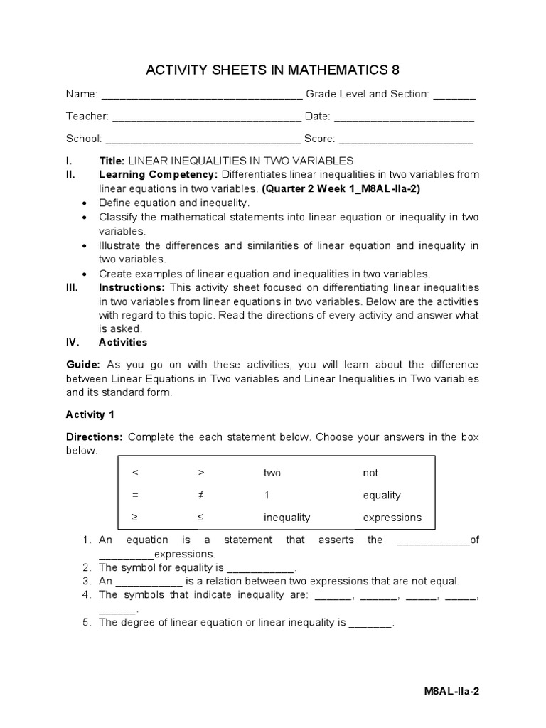 Math worksheets go linear equations answers. 8th Grade Math Practice, Topics, Test, Problems, and Worksheets Web05/04/2021 · Eureka Math Grade 8 Answer Key Go Math Grade 8 Answer Key Big Ideas Math Answers Grade 8 Do you have a test coming up and scared about what to prepare for in 8th Grade ... Access our Big Ideas Math 8th Grade Answers listed below to resolve all your queries on the Chapters involved. ... Simultaneous Linear Equations – … 8th Grade Math Worksheets | Printable PDF Worksheets WebPrintable 8th Grade Math Worksheets with answers. Find an outstanding range of maths worksheets for children in Grade 8. ... Over 350 pages of the highest quality Grade 8 Math worksheets. (Each worksheet is differentiated, including a progressive level of difficulty as the worksheet continues). ... Linear Functions Real Life Graphs Rearranging ... CCSS Math Answers – Go Math Answer Key for Grade 8, 7, 6, 5, … WebHMH Into Math Answer Key 180 Days of Math Answer Key Grade 1-2 Quiz Grade 3-5 Quiz Grade 6-8 Quiz Grade 9-10 Quiz Grade 11-12 Quiz ESL Quiz Big Ideas Math Answers Go Math Answer Absolute Value Worksheets | Math Worksheets WebAbsolute Value Equations Worksheet 2 PDF View Answers. Absolute Value Equations Worksheet 3 - Here is a 9 problem worksheet where you will have the chance to solve some absolute value equations all by yourself. You will split each absolute value equation into two separate equations, then solve them to find your two solutions.